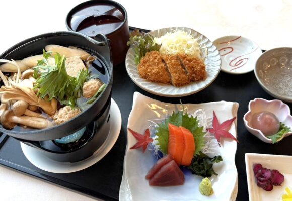 ふんわり仕上げた鶏団子とお野菜をあつあつのお出汁で楽しむほっとする一品。体の中からあたたまる。冬にピッタリのお鍋とヒレカツとお刺身が楽しめる、贅沢な倶楽部御膳です。満足感たっぷりのメニューです。